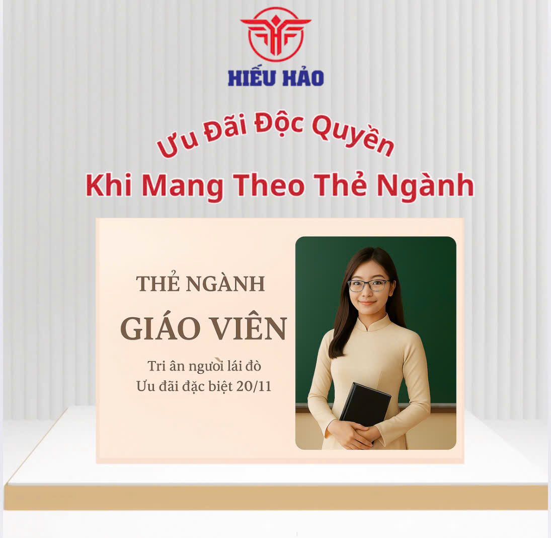 🎫 Khi mang theo thẻ ngành giáo viên, quý khách sẽ nhận ngay ưu đãi đặc biệt cùng phần quà tri ân – thay lời cảm ơn chân thành từ Hiếu Hảo.